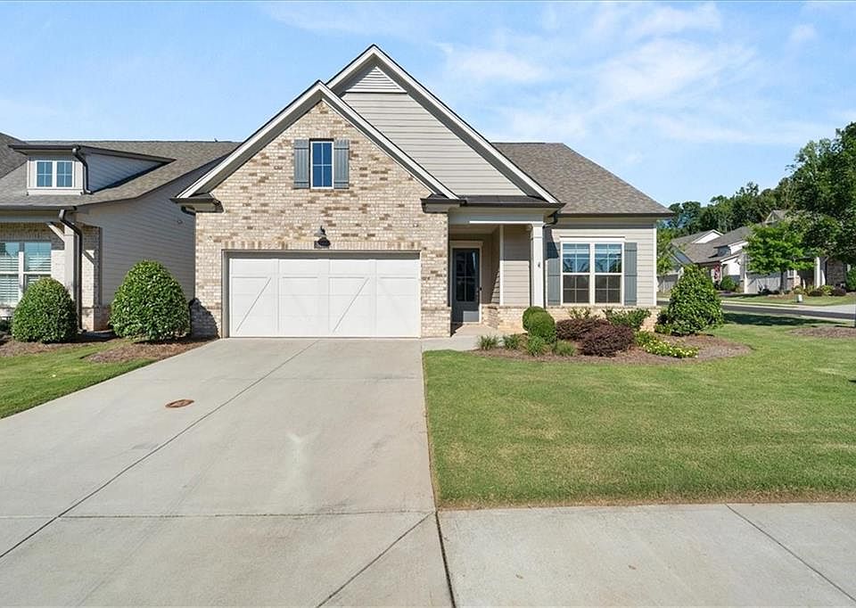 Welcome to this beautiful stand-alone home in the highly sought-after gated 55+ community of Traditions at Herrington. Built in 2021 and set on a spacious corner lot, this single-level residence offers 3 bedrooms, 2 bathrooms, and an inviting open-concept layout with soaring 10-foot ceilings. A versatile bonus room provides the perfect space for a home office, hobby room, or creative studio. The kitchen features sleek stainless steel appliances and a design ideal for gathering with family and friends. Step outside to the screened-in porch to enjoy your morning coffee or unwind with an evening meal in the fresh air. Community amenities include a stunning clubhouse with a large pool, fitness center, and lounge, as well as a pet park and scenic walking trail. Conveniently located just minutes from shopping, dining, and Northside Hospital, this home offers the perfect blend of comfort, convenience, and active adult living.