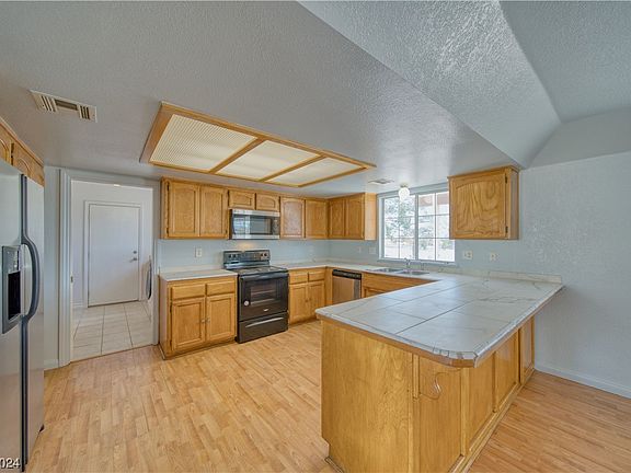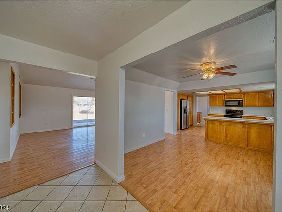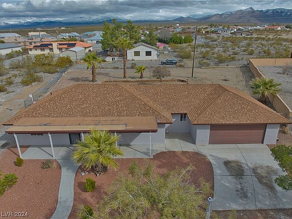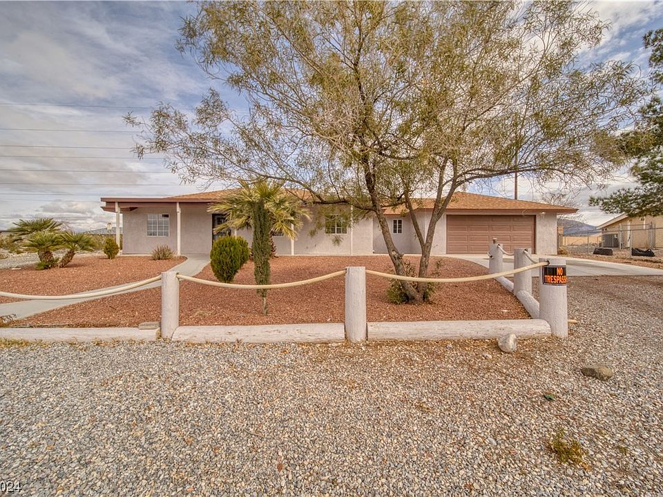 WELCOME HOME!!! Welcome to this Charming Single-Family Residential Home Located in the PICTURESQUE WINERY AREA of PAHRUMP. Boasting 1,581 square feet of Well-Designed Living Space, this inviting residence offers a perfect blend of Comfort and Style. This home features 3 bedrooms and 2 bathrooms with an Open and Spacious Great Room and Kitchen Area. Wood Linoleum flooring in kitchen and Great Room and Tile flooring in Bedrooms and Laundry Area. Property has been recently Refurbished with Fresh New Paint inside and out, AC Unit/Duct Cleaning throughout home and newer Appliances. This home has great curb appeal with a Desert Landscaped Front yard and mature Palm Trees making it a lovely Desert Oasis.