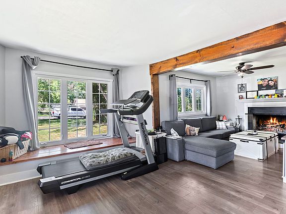 Extraordinarily Welcoming and Updated Two-Story Home with Fenced-In Yard! Centrally located in an established community just moments from Island Lake and Dunkin Donuts, this 4BR/2BA, approximately 1,800+sqft residence delightfully charms with an attractive exterior color scheme, beautiful mature trees, and a neatly manicured lawn. Brilliantly illuminated with soft natural light, the immaculate interior features an openly flowing traditional layout, gorgeous wood floors, modern paint hues, bright white trim, and a spacious living room with a lovely built-in window seat. Adding to the rustic panache, the expansive doorway leading to the cozy family room boasts a captivating wood beam, which perfectly accents the well-appointed fireplace. Memorable holiday dinners and intimate everyday meals may be easily enjoyed with an updated kitchen featuring stainless-steel appliances, white cabinetry, fashionable countertops, gas stove, dishwasher, a French door refrigerator, a breakfast bar, a subway tile backsplash, a double sink with sleek hardware, and an adjoining dining room with a farmhouse-inspired light fixture. Bask in the sizeable main-level primary bedroom, which impresses with a walk-in closet, wood flooring, and sliding glass doors to the outdoor space. Each additional bedroom is generously sized with a dedicated closet, while the office provides an excellent space for telecommuting or studying. For those seeking elevated self-care experiences, both full bathrooms deliver both comfort and style. As a bonus, the main-level full bathroom also includes a jetted tub. Outdoor entertaining is a breeze with a fenced-in yard, a semi-covered deck, and tons of greenspace for future customization. Other features: detached 2-car garage with new garage doors (2022), main-level laundry room, finished attic/4th bedroom, newer A/C condenser (2020), only 54-miles to Downtown Chicago, near shopping, restaurants, parks, and schools, and more! Call now to schedule your private showing!