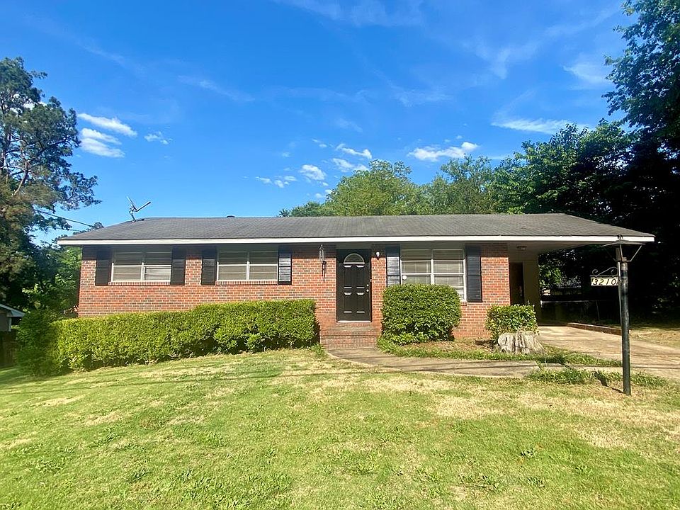 3 Bed 1 Bath brick home in a quiet North Columbus neighborhood close to shopping and dining! This home has hardwood floors in each bedroom as well as the living room. The kitchen has a dining area with plenty of room for the whole family with a breakfast bar looking into the living room. Outside you will find a 1 car carport with a large storage room as well as a fenced backyard and a aluminum awning over the back patio.