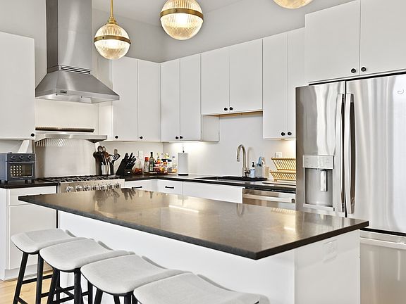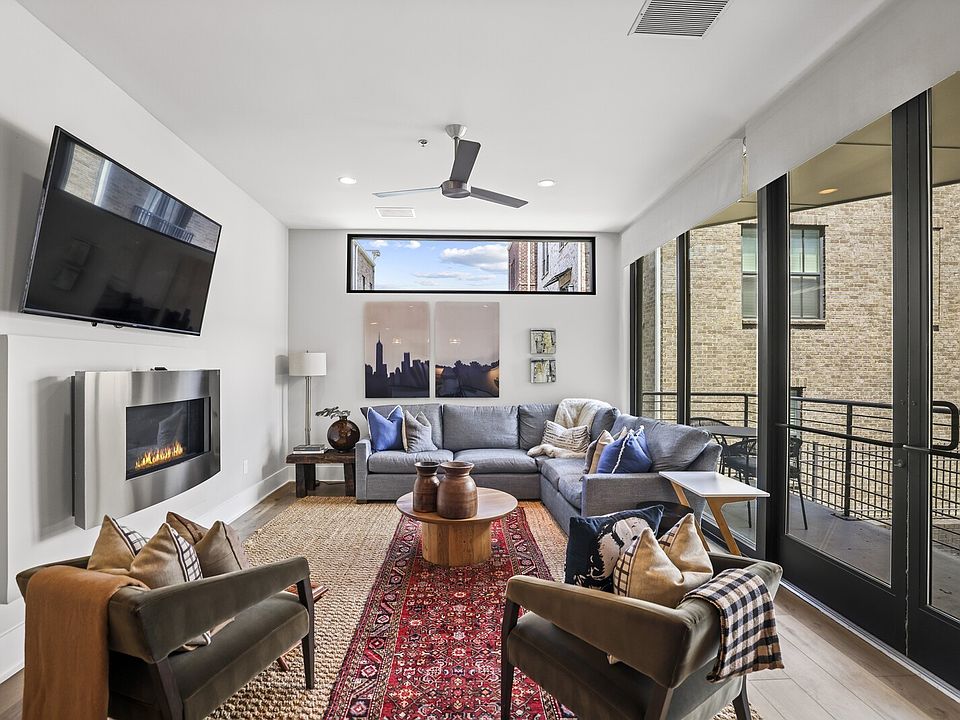 MOVE IN READY! This exquisite condominium has undergone a complete top-to-bottom renovation with luxurious finishes. It boasts an open floor plan that seamlessly connects the living room (featuring a brick fireplace, built-in shelves, floor-to-ceiling windows with manual blinds to the stunning kitchen (highlighted by quartz counters, a 5-burner Viking stove, and shaker cabinets). The spacious and welcoming primary suite includes a brick wall feature, abundant natural light, an ensuite bathroom with marble shower tile, and a custom-built walk-in closet. Additionally, there is a convenient work station, laundry room, and access to a shared terrace rooftop entertainment area with breathtaking city views, accessible by elevator. This boutique condo is situated just one block from West End Avenue and offers a lovely covered patio for enjoying morning coffee or evening cocktails. The property also includes an extra 9 x 4.5 storage area, gated garage parking with 2 reserved spaces.