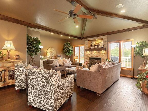 Step inside this stunning, oversized, open concept ranch home and marvel at the space in every room. From the large welcoming front porch, take time to admire the stacked stone & brick that surrounds the front of this gorgeous home. Once inside you will be immediately impressed by the large foyer, office (currently being used as a craft room, vaulted great room with beamed ceilings & new textured wood flooring throughout much of the main level. The gourmet eat in kitchen offers an abundance of cabinets, exquisite granite countertops & a chef's dream pantry. The master suite offers a spa like bath, oversized whirlpool tub, dual vanities, his & her closets, as well as a private deck. The main floor laundry also offers a fabulous drop zone, perfect for a busy family. While on the main floor, don't miss the bright 4 seasons sunroom, perfect for relaxing with a good book, cup of coffee or a glass of wine. The lower level will also not disappoint, with 4 additional bedrooms, all with ample closet space, 3 full bath, family room, private library area and a beautiful new wet bar area with tiled flooring & reclaimed wood. The sellers have lovingly maintained & upgraded this home to perfection. New interior paint, flooring, beamed ceiling are just a few of the many special features the sellers have done. Book your showing, this home will not disappoint