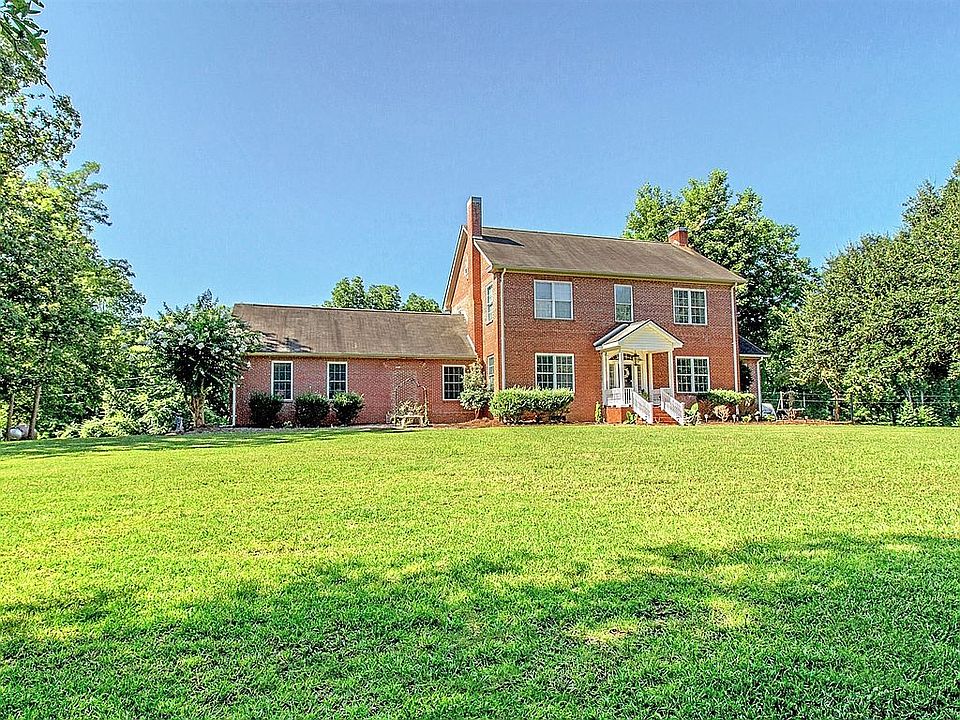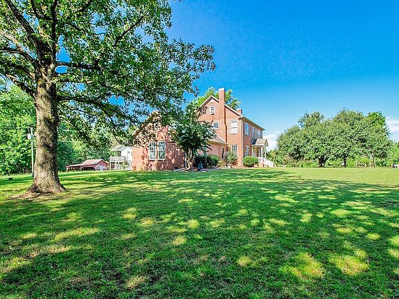 Fall head over heels with this exquisite homestead! Distinguished all brick home with almost 5000 sq ft! Southern elegance flows throughout the layout featuring 4 bedrooms, 3 1/2 baths, den, bonus room and sunroom! Great room and living room both have fireplaces to relax by. A cook's kitchen featuring double ovens, great prep room/cabinetry and formal dining area. Two masters - one on first and one on second, both with fireplaces! Over the 4.7 ac of level, wooded land, there's a detached garage w/ guest suite along with barn, storage buildings and even a basketball court!