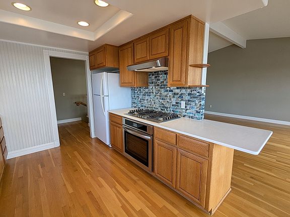 This beautiful two-story beach retreat is a must see! At approx. 1500 sq. ft., this home has been recently updated with fresh paint, lighting and ceiling fans, appliances, and custom tile backsplashes. Upon entry you are warmly greeted by real hardwood flooring, a custom stained glass window, and oversized hallway that leads to the bedrooms and a full bath. Both bedrooms are very generously sized and can easily accommodate king beds plus additional furniture. The back bedroom has French doors that lead out to a covered ocean view deck and has stairway access to the private fenced yard. The hardwood floors continue upstairs which boasts spectacular ocean views from every window! The kitchen has solid wood cabinets, Corian countertops, custom tile backsplash, and brand new 5 burner stove and extra large stainless-steel oven. The dining room is adjacent to the kitchen and opens up to the great room. The large living room has vaulted wood-beam ceilings, custom built-ins, and a bench seat to soak in the views. French doors lead you out to the upstairs deck with impressive views from Morro Rock to the Cayucos pier. There is plenty of room for an outdoor dining set and entertaining space. Attached two-car garage with additional parking on the paver driveway. Washer and dryer included. Tenant pays all utilities. One year lease. Non-smoking property. Shown by appointment. *Will consider cat with increased deposit. Sorry, no dogs allowed.