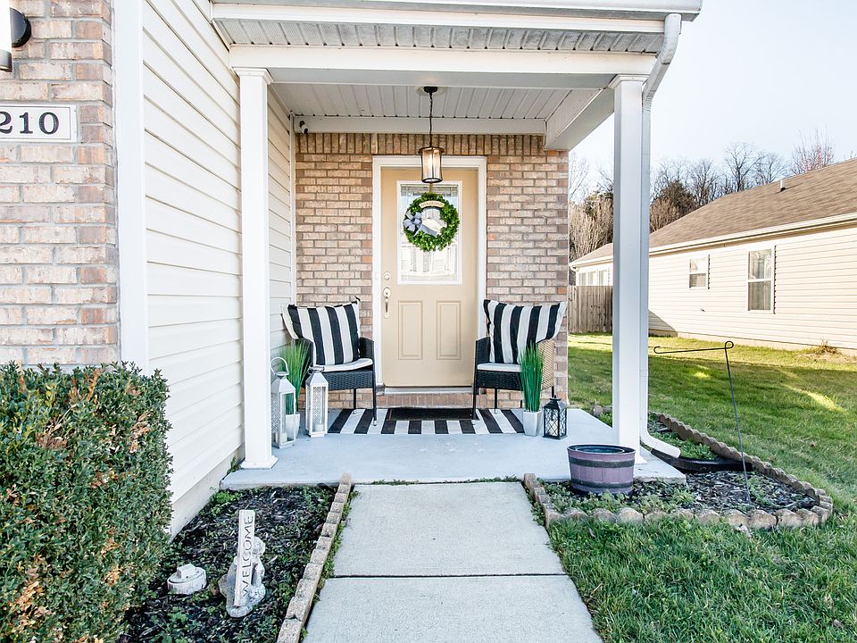 This elegant two-story home features a gourmet kitchen with quartz countertops, sleek smart fridge and gas oven/range, plus the addition of a spacious new island in the kitchen enhances both functionality and style. The chic fireplace radiates sophistication in the living area, while laminate floors and tile accents throughout enhance the contemporary ambiance. Step outside ti the stunning patio overlooking the woods, complete with an electric retractable awning, two new storage sheds, and a charming playground. With a finished garage, 2022 HVAC system, and gas furnace. Every detail has been carefully considered, and meticulous design touches throughout, including the staircase. Located in the prestigious Southside Elementary School district, this property offers both elegance and practicality. Don't miss the chance to own this magazine-worthy masterpiece!