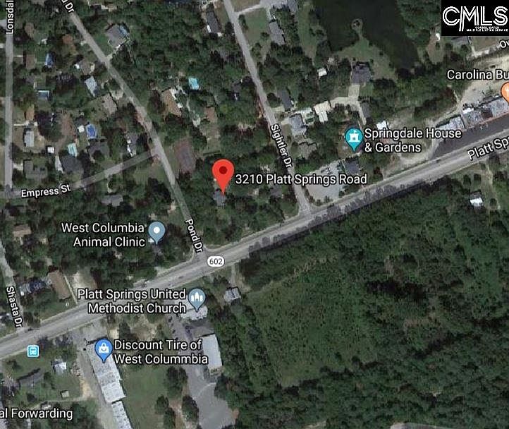 House on property is as is and of no value . Located on a corner lot with ingress and egress from Platt Springs or Pond Drive. Zoning is single family residential but properties in proximity are zoned residential/commercial. The sale would be contingent upon rezoning for the intended use of the buyer. All utilities available. Close to Columbia Metropolitan Airport, Midlands Technical College, and Spectrum