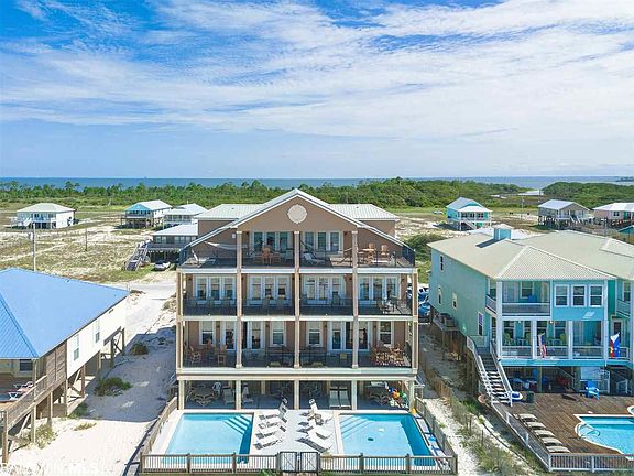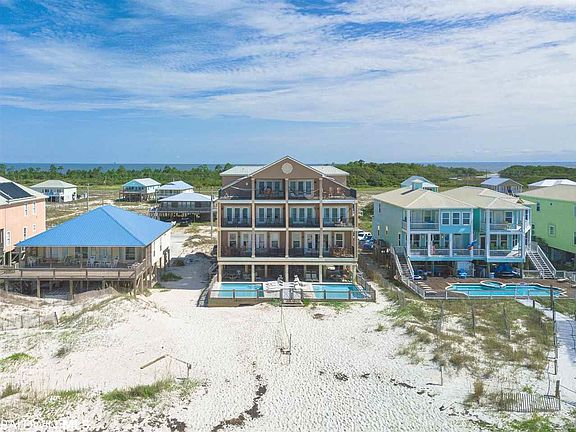 Welcome to "Beach Estate" Direct Views, Direct Views, Direct Views!!! That's right!! Beach views to enjoy for days!! Constructed in 2009, This Gorgeous Duplex sits proudly on 75' of Gulf front property on the Fort Morgan peninsula West of Gulf Shores, Alabama. It has ICF Concrete on the external walls except the third floor. This "All Suites" 12 bedroom & 12 bath (with 2 additional half baths) boasts spacious kitchens on the first floor with granite counter tops, stainless steel appliances, ice makers, and wine coolers. 2 Penthouse Suites on the 3rd levels with Gulf front views, and 4 Bedrooms on the 2nd Levels with Gulf front views. Breathtaking Views from nearly every window of this well maintained, 3-story property. It's on concrete pilings. Separate elevators for each side make going from top to bottom a breeze. View Video and 3D Matterport to see it ALL. Enjoy the luxurious outdoor spaces on the Gulf facing balconies with newly refinished Ipe hardwood decking and custom bars, or lounge by one of the 2 Private Pools. The durable polywood deck furniture that will also convey with sale. A Perfect opportunity for the savvy investor. This 7500sqft home is already a RENTAL MACHINE grossing total of $424K in 2021 with projections +$450K for 2022 through Vacasa Management!!! "Beach Estate" is being offered as a fully furnished, turn key property. Located close to world class golf destinations, marina and dining opportunities. Buyers and buyers agents verify measurements and all other info that are deemed important. Turnarounds are on Saturdays only.