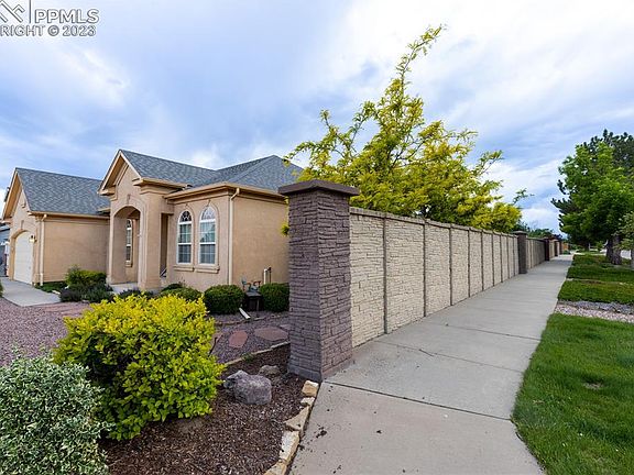 Welcome! This lovely rancher is peacefully situated on a spacious corner lot. This 4 bedroom, 3 bath, 3 car garage home has all the right features. The general layout is spacious and comfortable with an open concept floor plan. The main level includes the primary bedroom suite with attached bathroom and walk-in closet, a dedicated office space, living room with cozy fireplace, kitchen and laundry area. The dining room walks out to a spacious custom built deck perfect for BBQs and gatherings along with a private fenced back yard where you can garden or just enjoy the beautiful summer evenings in Colorado. The basement level includes 3 large bedrooms, a large family room and an additional space that could serve as a bedroom, gym or craft room. Additional features include air conditioning, and an automatic sprinkler system. This property is conveniently located in the peaceful Soaring Eagles neighborhood off the Powders corridor, close to Fort Carson, Peterson AFB, the Amazon distribution centers, tons of restaurants and entertainment options. Don’t miss out on what could be your new home! Schedule a private tour today.