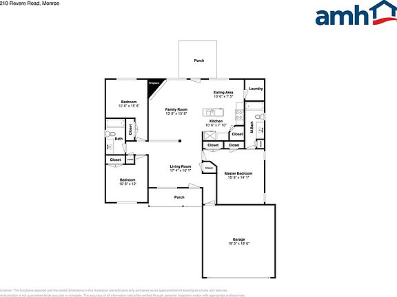 This 1330 square foot single family home has 3 bedrooms and 2.0 bathrooms. This home is located at 3210 Revere Rd, Monroe, NC 28110.