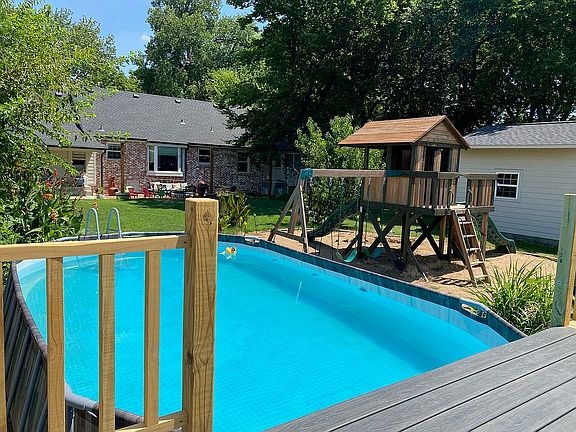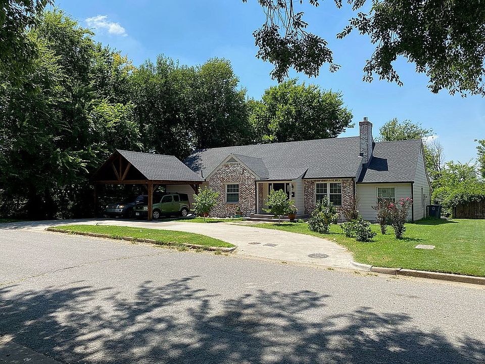3 bed 2 bath home that backs to Gathering Place in Midtown Tulsa. Updated kitchen & bathrooms, original hardwoods, gas fireplace, indoor laundry room, extra living room. New siding, roof, plumbing, air conditioning and carport with extra parking installed in 2017, A large backyard with storage shed, large play structure and above ground pool with deck. In addition, there is a comfortable party area in the backyard. The lot backs up to the Discovery Lab and Gathering Place and is next to Crow Creek.