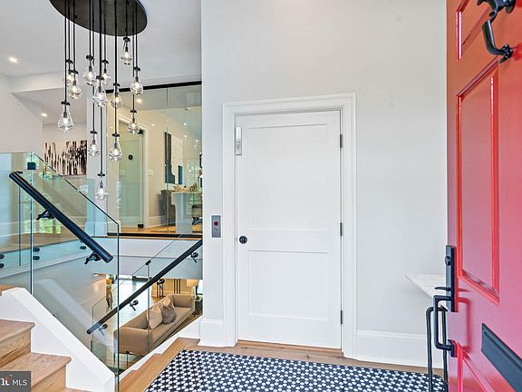 Ideally located in the heart of Georgetown’s East Village, this stunning mid-century residence has been meticulously and completely transformed through a full renovation, showcasing premium fixtures and finishes throughout its highly functional and desirable floor plan. No detail was overlooked in the spectacular renovation of this home, which epitomizes luxury, sophistication, and elegance. As you step into the marble-inlaid foyer, a dramatic glass-railed staircase, illuminated by a contemporary light fixture, gracefully introduces you to the home's various levels, which can also be accessed from the elevator. The main level offers an open and airy living room, complete with wide plank white oak floors, a gas fireplace, built-in shelving and cabinetry, a wall of full glass doors, and access to the large rear terrace. The gourmet chef’s kitchen is well-appointed with a large center island with a striking Calacatta Prado Quartz countertop, a top-of-the-line Miele appliance package, an attractive La Cornue oven and range, and white oak custom cabinetry. A spacious walk-in butler’s pantry offers access to the glass enclosed wine cellar, and the kitchen flows seamlessly into the dining room, which also opens onto the rear terrace. This level also features a convenient mudroom with cubbies, a full bathroom, and direct entry to the garage. On the second floor, the luxurious primary suite includes wide plank white oak floors, a gas fireplace, and a large balcony overlooking the private and expansive grounds. The spa-like marble bathroom offers dual vanities, an oversized frameless glass shower with dual showerheads, a large separate soaking tub, and heated floors. The primary suite is complemented by an impressive walk-in closet with an abundance of shelving and storage. This floor also includes an additional bedroom suite with a private bathroom and large closet. Additionally, there is a beautiful family room/library with wide plank white oak floors, built-in bookshelves, a large gas fireplace, and balcony access. The top floor provides two additional bedroom suites, each with large closets and attractive en-suite marble bathrooms with heated floors. The lower level provides ample storage space, a gym area, a laundry room, and elevator access. The exterior of the residence is perfect for entertaining, featuring a large pool with a swim-up bar, multiple terraces for dining, a built-in grilling station, a putting green, and beautifully landscaped gardens and grounds that are expansive and private. This spectacular residence is luxury living in Georgetown at its finest, boasting modern amenities and convenient proximity to neighborhood favorite restaurants, shops, and parks.