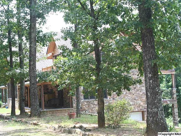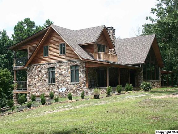 30 acre equestrian property with luxurious Stack Stone and Cedar home featuring Vaulted wood ceilings, Stone Fireplace, 4 large Bedrooms with private baths,wood and marble floors,drive through 8+ car basement/garage with workshop. This secluded newer home has water view and 2 gated entrances. Off the grid living with solar power, two generators, safe room and much more. There is a 2 bedroom guest house, 2 separate apartments, 1500 sq ft office in the 24 stall barn, 50x50 workshop with 2, 12 foot roll up doors, one large pond with swimming dock and two smaller ponds in back pasture. Beautiful Winter water view of Lake Guntersville. Conveniently located North of Guntersville.
