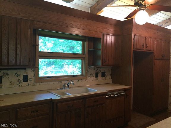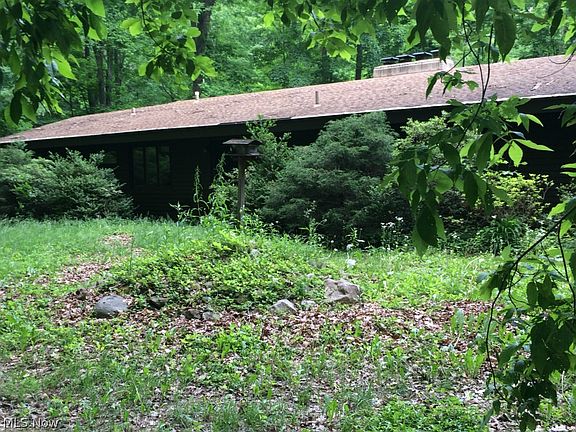Bank owned sold as is. Secluded three bedroom ranch with two full bathrooms. The living room/dining room has a wood burning fireplace and vaulted ceiling. A first floor laundry room is located off of the kitchen. The is a full, walk out basement which has an additional wood burning fireplace. The yard is heavily wooded, a large spacious deck overlooks a ravine, shed, and more.