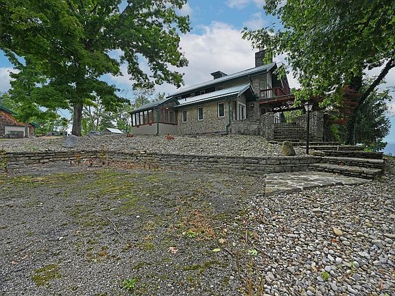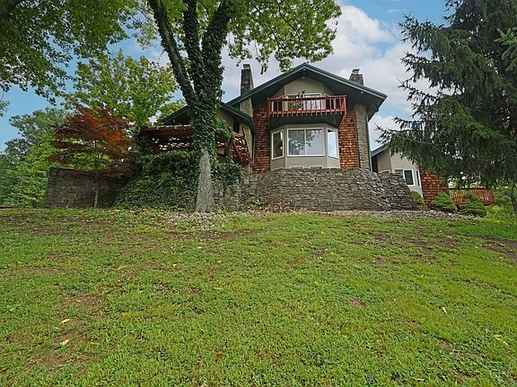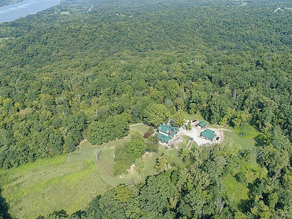 If you've been looking for a place with land & a big home overlooking the River, this is it! Cabin-feel w/ vaulted ceiling living rm, this home just goes & goes. Gaze at the abundance of deer & the beautiful valley below from the 3rd flr party rm of this magical property & ride 1000s of ft of trails. Travel up the long mystique filled driveway to find the house perched atop. 2nd 2 bd ranch guest/rental house as well! Less than an hr from dwntwn, come live your dream on this hunter's paradise!