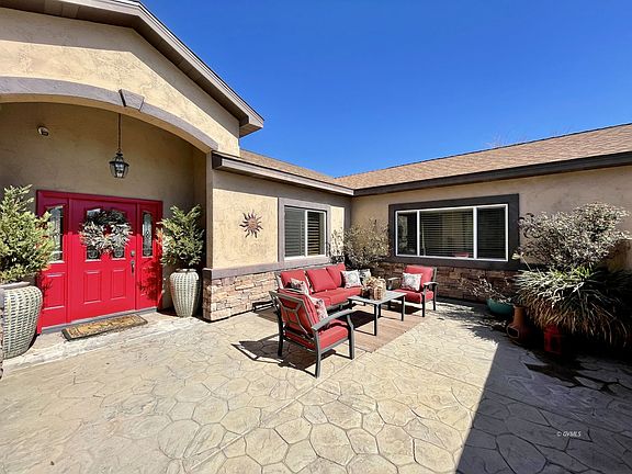 This amazing home has a dream backyard and 2,500 sq-ft shop! Right as you walk through the front gate, you're greeted by a beautiful courtyard patio. As you enter the front door, you'll find a well thought out, split floor plan featuring 4 bedrooms, 3.5 bathrooms, an office, large living room, and a kitchen that opens to the dining room. The principle ensuite features a large bedroom with bay windows, French doors leading to the backyard, and a bathroom including a large garden tub, walk-in shower, 2 vanities, and a large walk-in closet. The kitchen has granite counter tops, custom cabinets featuring bottom sliding shelves, gas oven range, and an island perfect for prep. Down the hall, you'll find 2 bedrooms sharing a jack-and-jill bathroom and the other bedroom with an ensuite bathroom. The home also features central vacuum, water softener, tankless water heater, energy efficient HVAC unit, and solar panels. In the backyard you'll find a pool and jacuzzi combo, a gazebo to bbq under, a large pergola to sit under, and beautiful landscaping. The 2,500 sq-ft shop includes 3 garage bays with insulated roll-up doors to house your toys or RV with plenty of room to work!