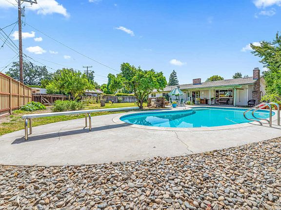 Beautiful 3 bedroom 2 bathroom home, 2 minutes from Royal Oaks Elementary and 5 minutes from College of the Sequoias. The Royal Oaks neighborhood is one of the most desirable neighborhoods in Visalia. This home features a dual dishwasher, beamed ceilings, hardwood floors throughout, bonus room, two brick fireplaces, pocket doors that save space, and newer windows with solar screens. There are large closets and ceiling fans throughout and the garage has a built-in workshop area. Both the front and back yards feature sprinklers with timers. The backyard is very spacious! The sparkling pool with a diving board is cemented around and there is still a large grass area. There are a variety of fruit trees on the property such as tangerine, lemon, and fig. There is a shed on the west side of the home, the 50 year presidential composition roof is 10 years old, and the water heater was replaced in 2018. Call your realtor and schedule a private tour!