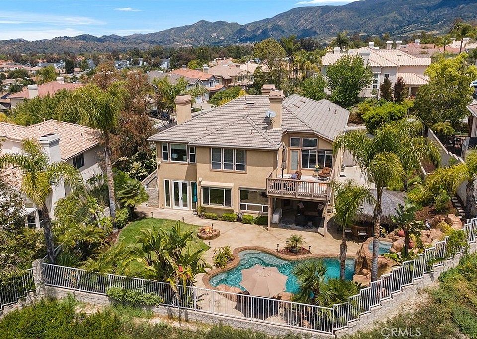 Entertainer's paradise behind the gates of exclusive Walden, a highly sought after community tucked into the foothills of Trabuco Canyon. This opulent 5-bedroom residence combines elegance with joie de vivre, with spectacular resort-inspired grounds on a private, oversized 10,600+sf view lot situated on a single-loaded culdesac. Through the stately double-door entry, you’ll find gorgeous hardwood floors, a formal living room with fireplace, dining room with new French doors, an updated chef’s island kitchen with granite counters, soft-close cabinetry and newer appliances opens to the great room, a guest suite with private en-suite bath, and a powder room. The grand staircase leads to an expansive loft, ideal for recreation, informal gatherings, movie nights, homework and more. A separate, private office with French doors has a picture window that captures the view. The sumptuous master suite is an idyllic retreat, with a dual-faced fireplace creating ambience in the bedroom & bath, and a private balcony perfect for enjoying morning coffee or evening cocktails. The spacious bath features a separate soaking tub and shower, two sinks, and a large walk-in closet in addition to the full-wall closet in the bedroom. There are also three very generously-sized secondary bedrooms on this floor, and a full bath with dual sinks. The highlight of this unique property is the magnificent rear yard, backing to a greenbelt and affording views and privacy. Make every day a luxurious getaway with a pebbled saltwater rock pool & spa with slide & multiple waterfalls, outdoor kitchen & bar beneath a charming thatched palapa, fire pit, California room with outdoor TV, tropical landscaping and a lush, expansive lawn. The bar area seats 10 easily, and features a top-of-the line DCS bbq, fridge, sink, kegerator and more. The pool deck and rock structure are newly re-painted, and an elevated spa built into the rock structure offers stunning sunset views. Convenient smart features throughout the property include outdoor cameras, internal security system with Ring and door sensors, Wifi pool interface, smart light switches and outlets, Nest thermostats, B-Hyve sprinkler system, and MyQ keyless entry garage opener. You’ll enjoy Walden’s private catch-and-release pond, newly updated tot lot, community pool, spa, and clubhouse. Conveniently located to all RSM has to offer, including a lake, hiking trails, shopping, dining, toll roads and more. Welcome home!