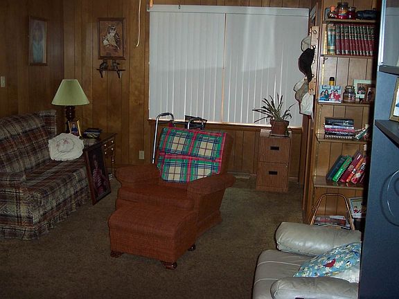 Nice level lot, new roof in 2004, covered patio, storage shed stays, large living room and master, extra paving for parking.