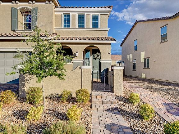 Discover this beautifully upgraded 4-bedroom plus den home, located in the highly sought-after community of Inspirada in Henderson. Enjoy convenient access to community parks and playgrounds just 0.5 miles away. The expansive courtyard is sure to captivate you. Inside, the open floor plan features upgraded flooring and baseboards, custom shutters, and modern lighting fixtures and fans throughout. The formal dining room and spacious family room offer a warm welcome to the house. This home is exceptionally clean and a must-see! The kitchen is designed for culinary enthusiasts, with 42” raised panel cabinetry featuring glass inserts and high-end quartz countertops with a glass backsplash, perfect for entertaining. All bedrooms are located upstairs, with the den downstairs, accompanied by an oversized loft area ideal for a relaxation space. The private rear yard is perfect for hosting gatherings, featuring custom pavers and turf.