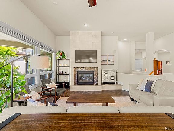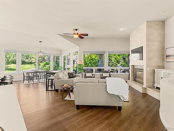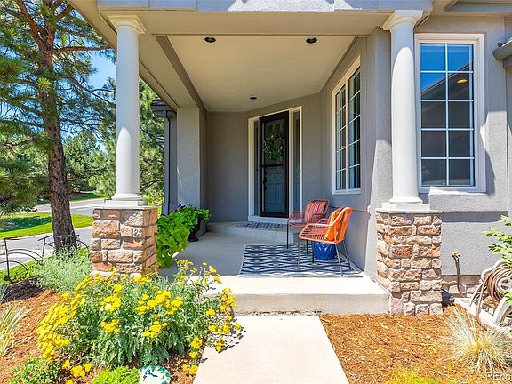 Experience luxury and low-maintenance living in this exquisite 3-bedroom, 3-bathroom home nestled in The Greens enclave of the Village at Castle Pines. Meticulously renovated throughout, this residence showcases a newly designed gourmet kitchen featuring high-end cabinetry, quartz countertops, stainless steel appliances, and pristine hardwood floors. The open-concept design effortlessly connects the kitchen to the newly updated living room, highlighted by a floor-to-ceiling stone tile fireplace and expansive windows that offer views of the backyard and access to an inviting back deck. Adjacent to the living area, a formal dining space with a built-in wine bar provides a sophisticated atmosphere for hosting guests. The primary bedroom suite offers a tranquil retreat with a gas fireplace, patio access to a serene garden patio, abundant natural light, and an ensuite 5-piece bath featuring a walk-in closet. Completing the main level is a well-appointed office space near the foyer and a conveniently located laundry room and powder room. A stylish curved staircase leads to the lower-level retreat, boasting high ceilings, custom built-ins, an entertainment center space, and a charming bar area in the family room. Two additional bedrooms on this level provide ample closet space, garden-level windows, and access to a beautifully remodeled bath. This home also includes an expansive utility space that ensures ample storage for all your needs. Outdoor space blends seamlessly as you enjoy a covered back deck overlooking meticulously maintained lawns, gardens, and mature trees—a perfect setting for relaxation or entertaining. For car enthusiasts, the oversized 3-car garage has a convenient plug-in for electric vehicles or workshop essentials. Discover unparalleled luxury and effortless living at the Village at Castle Pines where you enjoy access to a wealth of natural beauty, exceptional amenities and services. ***Be sure to watch the aerial video of the home and surroundings.