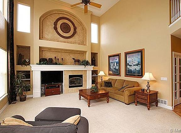 From the stunning curb appeal to the beautiful basement finish, this semi-custom home in prestigious Soaring Eagle Estates is a wonderful retreat from the bustle. The kitchen, with spacious cabinets, granite counters, convenient convection cooking, double wall ovens & island with built in microwave opens into a large, bright eating space adjacent to the 2 story family room. The dining room, family room, bonus room, & master are wired for speakers. Central air conditioning, 3 ceiling fans & fireplaces in both the main floor family room & master will add comfort year round. The fireplace in the basement living space is furnace rated to provide heat and ambiance. The wet bar with travertine tile floor & counters is complete with a refrigerator & microwave. Exterior paint & roof were new in 2012. Located on a cul de sac, professionally landscaped. Basketball pad. Patio wired for speakers & equipped with a gas line & both hot & cold water for your new outdoor kitchen. Shed/Trampoline