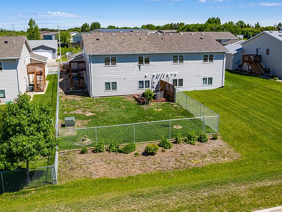 Check out this great Side-by-side Twinhome with a 2 car attached garage and FENCED YARD. This open floor plan has a center island snack bar with numerous cabinets and a very large pantry storage closet. There are wood laminate floors in the kitchen and dining area plus there is a French door providing access to the side and fully fenced backyard. Enjoy the neutral colors thruout. The main entrance has a large closet. The lower level is unfinished with above ground windows and has lots of space for a future family room, another bathroom, laundry room and 2 more bedrooms. The attached 2 car garage has a new heater. Plus there is a new cement pad for extra parking. There are NO monthly association fees. Great easy access to I-94 and close to Red Trail School and all the new businesses and shopping !