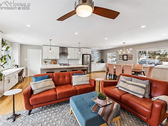 Nestled in one of Colorado Springs' most sought-after neighborhoods, this lovingly maintained and beautifully updated ranch-style floorplan showcases west-side living at its finest! Just blocks from the iconic Garden of the Gods park and trail system and situated on a corner lot, this home boasts five bedrooms, three bathrooms, and an attached two-car garage. The main-level bathrooms, kitchen, living, and dining spaces were all professionally remodeled in 2018, giving a modern feel to the heart of the home while incorporating thoughtful and practical features. Highlights include: hidden appliance nooks (including a coffee station!), built-in desk/office space, counter-height kitchen island with seating for 4, a custom-built entertainment area with hidden television and fully electric fireplace! 2 bedrooms, a full bathroom, the primary suite (with adjoining 1/2 bath), and large laundry area/mud room complete the spacious main level. The basement level showcases an open family room/rec space, two additional bedrooms, a 3/4 bath, and a fabulous unfinished space (over 500 sqft!) that is great for storage or could be completed to suit your needs! Don't miss the fully fenced, private backyard with a 28x11ft poured concrete patio, an ideal space to enjoy some grilling or bask in the Colorado sunshine. Situated minutes from Old Colorado City, Manitou Springs, I-25, and some of the area's best shopping, dining, and outdoor recreation. This home is an absolute gem- we can't wait for you to take a look!
