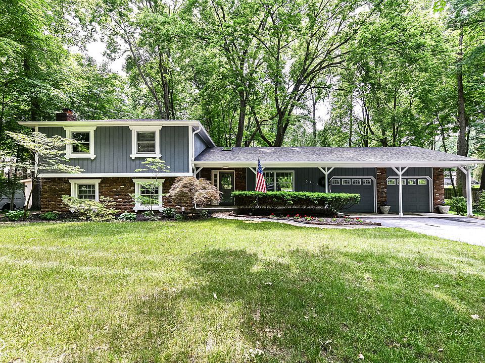 THREE full baths (w/one gutted to the studs) complete this 5 bedroom home in a beautiful 1/2 acre wooded setting with a serene creek meandering behind! Newer kitchen cabinet replacement with leathered granite, carpeting ~ 2 years old! Light pours through the kitchen & entry skylights! SO many possibilities in this tri-level home. Walking distance to Forest Dale elementary school & nearby fire station bringing homeowners insurance costs down! NO HOA!! A short drive or bike to the Monon Center via the 6' paved path in front of the house. Safely bike to downtown Carmel for dinner, The Palladium or Carmel's Farmer's Market. Pool/tennis memberships possibly available at nearby neighborhoods. New kitchen stove ~ 6 months old.