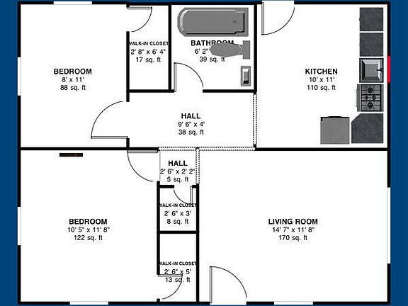 - Total interior livable area: 672 sqft