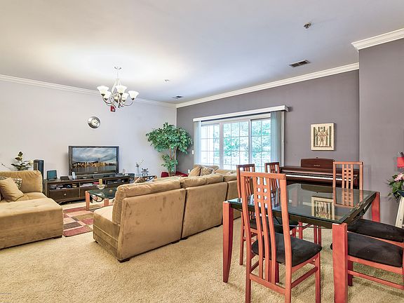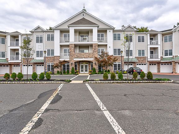 Welcome to Plaza Grande! This Farnsworth Model is the largest model in the development and only in 4 buildings. It is 1808 sq. feet with 9 foot ceilings and crown moldings throughout. This building #3 is backed by woods and not near Route 18. One can enjoy four seasons of relaxing on the patio. The kitchen has granite and a wood floor plus upgraded cabinets. Very large rooms and the kitchen is huge with a built in pantry closet. The balcony faces the quiets woods. You can enjoy four seasons and watch a family of five deer grazing below!