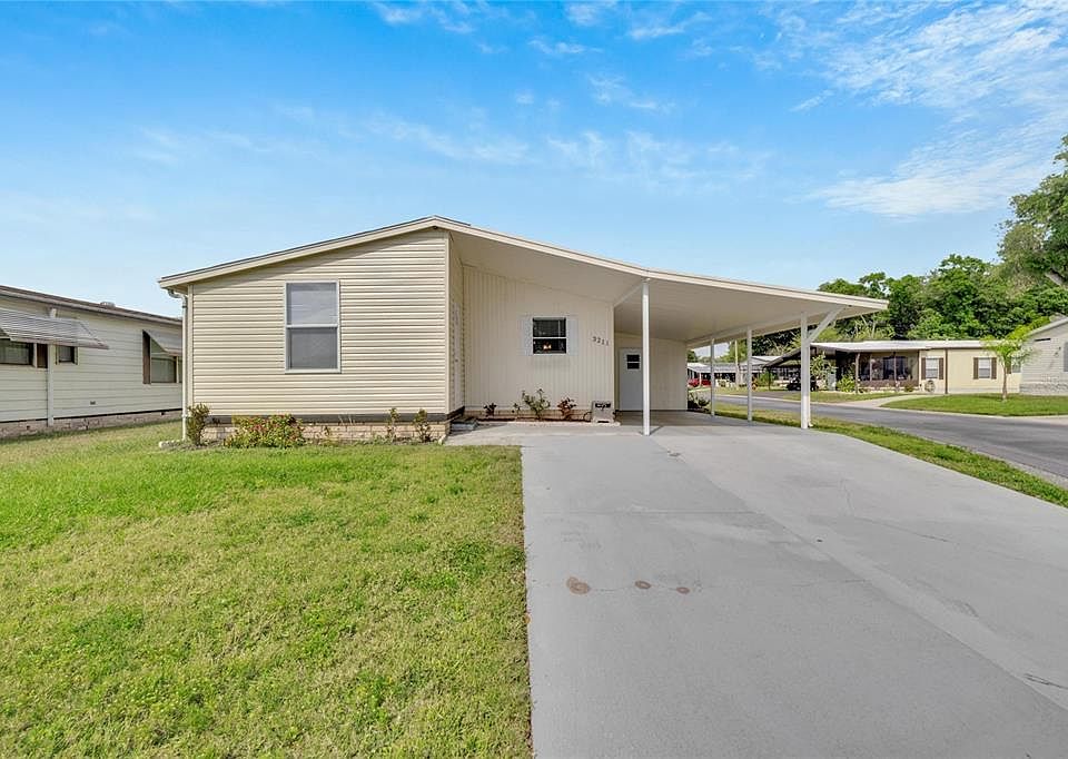 Welcome to this charming 2 bed, 2 bath mobile home in Wesley Chapel, Florida! Own the land with no lot rent or age restrictions, providing you with freedom and peace of mind. The spacious covered carport and extended paver driveway offer ample parking and outdoor space. Step inside to find a bright, open floor plan with vaulted ceilings and recent upgrades including a new roof (2022), A/C (2024), and laminate flooring throughout (2021). The kitchen features an island with a breakfast bar and an informal dining area. Join a vibrant community with amenities like a pool, clubhouse, game room, fishing dock, playground, and shuffleboard courts. Don’t miss out—schedule a showing today!