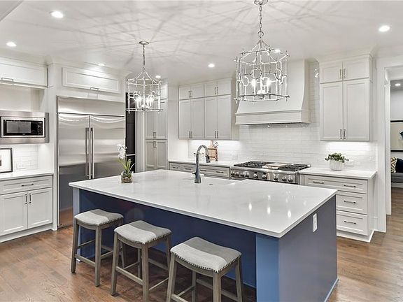 - Kitchen Features: Breakfast Bar, Eat-in Kitchen, View to Family Room, Stone Counters, Kitchen Island, Pantry Walk-In, Cabinets Other, Cabinets White
