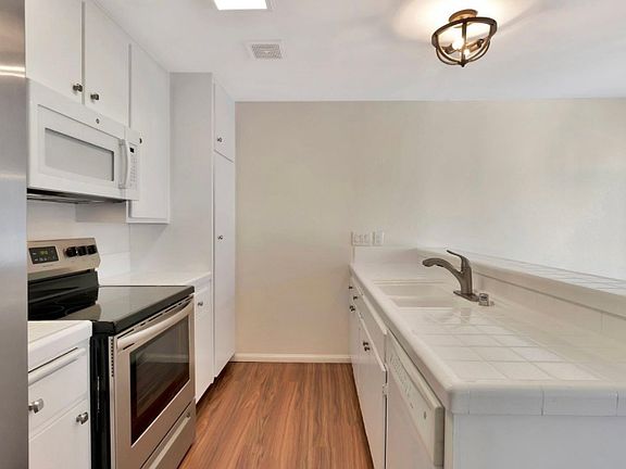 Gated 2 bed 2 bath 951 sq ft Balcony and storage Garage and parking space Pool and spa Washer and dryer in complex Freshly updated Easy access to beaches, Old Town, Mission Valley Walk to restaurants and shops Renter is responsible for gas and electric. No large animals.