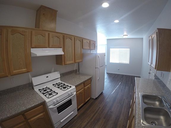 Solar, washer dryer hookups, frig, gas stove, wood style floors, custom closets, granite counter tops