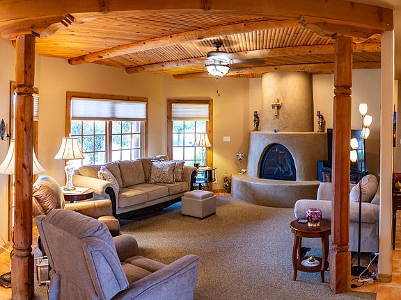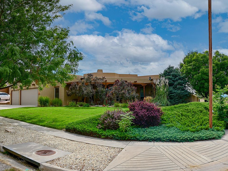 A beautiful SW style home that will take your breath away. Sit enjoy your days and evenings with the large covered porch or the large covered patio. Gourmet kitchen with granite, gas range, double ovens, and walk-in pantry. The home has an open floor plan with Saltillo tile and a kiva gas log fireplace in the living room. The main level has wonderful floor to ceiling windows with remote controlled automatic blinds and both levels of the home have 9 foot ceilings. The large master suite has a door leading to the patio, 5 piece bath with jetted tub and his snd her walk in closets. Basement has a wet bar with mini fridge, office/den, 2 bedrooms, possible 1 non conforming bedroom, bathroom and a huge clean unfinished storage/mechanical room.