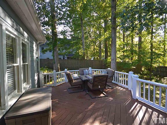 Wonderful cul-de-sac in north Durham neighborhood with sidewalks. Walk to Riverside High. Exterior and most of interior recently painted. Roof 2018, HVAC 2014. Hardwoods throughout both floors. Granite tops in Kit with gas range. Two story Family Rm. Large front porch and huge deck in rear. Walk in attic storage and 2 car garage. Newly updated Master Bath with garden tub and tiled walk in shower. Large Master Bedroom with spacious walk in closet. First floor walk in Laundry Room. Easy access to Duke.