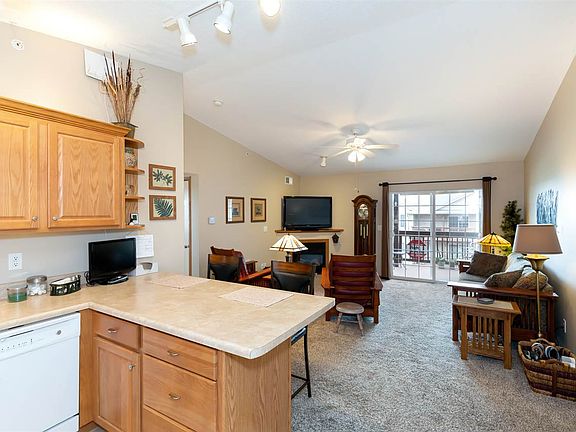 Wow! Pride of ownership shows in this condo that has a few extras that some don't. Open floor plan with vaulted ceiling, fireplace & breakfast bar. Kitchen has above cabinet lighting & crown molding on cabinets plus new sink, walk-in pantry, new hardware & special corner shelf. Newer carpet throughout, new hinges & lever handles on all doors, new lights in both bathrooms, freshly painted throughout, shades on deck & much more! Washer & Dryer negotiable.