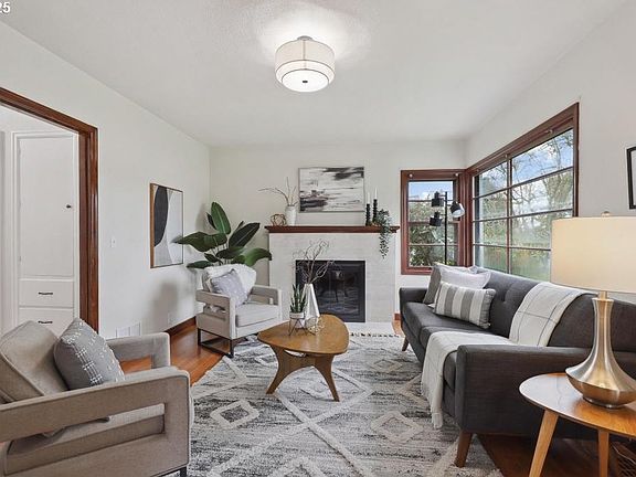 If you love the charm of a 1943 build but want updated and move-in ready, with a big yard and Southwest Portland convenience…meet your match! Lovingly cared for and maintained, this home brings together thoughtful updates with the character of an 80-year-old home. Freshly painted inside and out in 2025, it has the unique built-ins, quirky touches, and architectural details that make homes of this vintage so special. The kitchen has been refreshed with new quartz countertops, a stainless undermount sink, a microwave hood vent, and a new range. Hardwood floors run through much of the main level, while the finished basement and upstairs loft-style bedroom have durable laminate wood flooring. The main floor bathroom features a new quartz tub surround and tile flooring, and the basement bathroom has been updated as well. Updated lighting, hardware, and fixtures can be found throughout. New furnace in 2020. Outside, a humongous patio provides plenty of space for entertaining, while the .19-acre lot offers pear and persimmon trees, planting beds with trellises in the back, and summer-blooming dahlias in the front. The attached garage adds convenience, and the new fireplace tile, doors and screen give the living space a fresh look. Whether you love cozy evenings by the fire or sunny afternoons in the garden, this home has something waiting for you to discover. [Home Energy Score = 3. HES Report at https://rpt.greenbuildingregistry.com/hes/OR10236714]