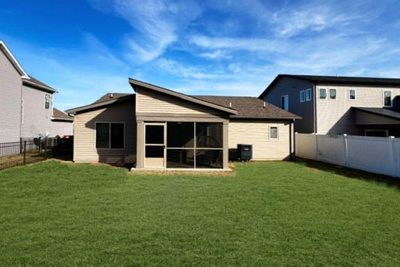 This newer ranch in Ashland Park East has great contemporary vibes both inside and out! A professionally landscaped front yard and welcoming covered front porch will greet you. Enter into the spacious entry that has lovely dark wood flooring. Current owner has an eye for decorating and has replaced nearly all the fixtures and fans with the newest/current brushed gold selections. Coordinating metallic gold/white patterned backsplash that extends under the kitchen cabinetry including the kitchen desk area. Fantastic floor plan, open from the kitchen to the living space that lives large with soaring vaulted ceilings. An abundance of expresso, custom cabinets with matching hardware, are top quality...all wood with tongue and groove corners. Nearly new, high end side by side stainless refrigerator. Plenty of room for barstool seating, with the gleaming granite-look 8 foot long center island! Nice sized dining area has two large windows allowing tons of natural light to pour in. Step outside to the covered,12 x 12 screened in porch that extends the living space to the outdoors. Custom white, wood blinds through out. Super master bedroom, with a big bathroom that has a huge vanity and a pocket door to separate the tub/stool area. Large walk in closet with another pocket door. Great layout with the primary privately located towards the back... and the other 2 bedrooms/2 full bath close to the front. Separate laundry room, conveniently located between the garage and kitchen also has a large coat closet...and newer washer and dryer will stay. Absolutely pristine condition...this home has barely been lived in with single, busy career owners that were very rarely even home! (no kits/pets) Super energy efficient, one level living with heat pump, low e-glass windows, high efficiency furnace and LP smart side exterior. Wonderful location, just a few homes from Toalson Park. Easy access to I74 and convenient bus stops and close to shopping! You will NOT be disappointed with this one! But hurry, newer homes in this sought after Subdivision don't come up often and always sell quickly... Call your favorite realtor and schedule your showing today!