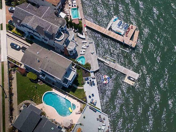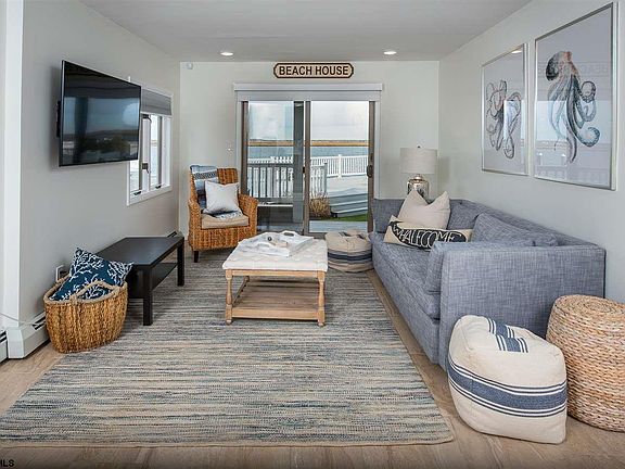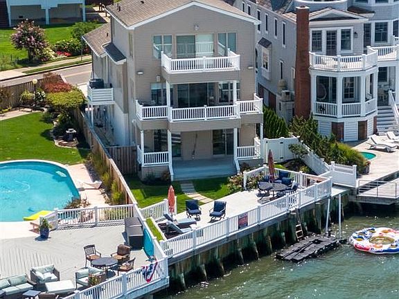 Private, luxury Longport bay-front home featuring 5BD, 4 BA, 2 half baths. Every detail in this home has been carefully updated and redesigned for entertaining. On the 1st floor, a large living area makes hosting a breeze, with large built-in bar, powder room, and Sonos music system (available through the house). Sliding doors allow guests access to the fenced and beautifully-landscaped yard with HUGE sunning deck. Two bedrooms & an updated bath offer additional sleeping space for weekend guests. Move up to the second floor living area to take in the panoramic bay views (or to cozy up by the gas fireplace). Open layout with high ceilings, large dining area, built-in bar, and beautifully updated kitchen make this a true family living space. The second floor also includes a junior master suite, a bedroom, a full bath, and plenty of closets. The 3rd floor - with the most stunning views - has been redesigned as a private master oasis. Vaulted ceilings, his-and-her closets, and private deck make this a quiet place to hide out from the kids. Or, step behind the frosted glass door of the master bath and escape even further into the glass-wrapped, custom-tiled steam shower (with it's own TV!). Restored Anderson windows, new 2-zone HVAC, radiant floors, and CATv security system will keep you warm, cozy, and safe year-round. 2-car garage and pavered drive offer plenty of parking and storage. A few short blocks from the beach, steps from the best restaurants on the island!