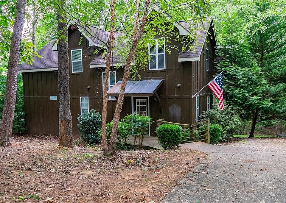 What a great home in "A Quiet Place in the Woods" private gated neighborhood on Lake Lanier! Attractive 1-1/2 story cottage exterior, main level features gleaming hardwood floors, entry foyer, exceptional open great room w/soaring ceilings & 2-story stone fireplace, kitchen w/stainless appliances directly open to great room, master on main level, and awesome covered back deck...perfect for that afternoon beverage & socializing! Upstairs are 2 generous bedrooms (both w/walk-in closets) & a nice bath between. Built in 2010, features a heat pump for HVAC & double pane windows for quality. Neighborhood has so many amenities: clubhouse, pool, tennis, street lights, paved streets, boat storage, boat launch, even a n'hood boat dock. With the HOA fee only $60/month, here's your chance to buy a move-in ready lake home at a very reasonable cost!