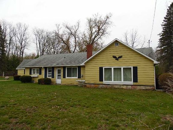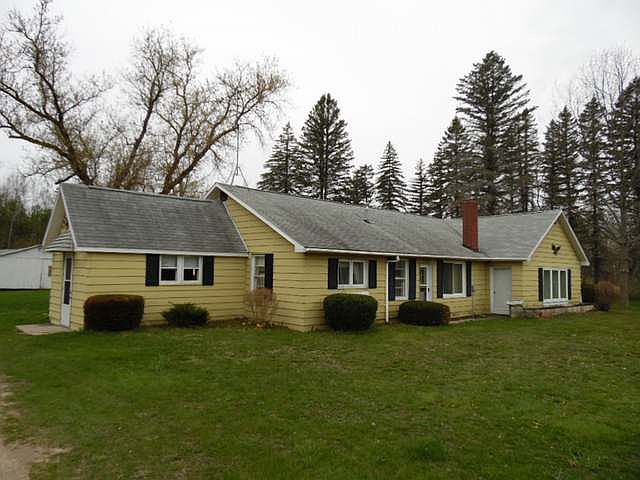 Ranch home on 20 wooded acres with approx 1800sqft of living area, 3 bedrooms and a full bath. Has a large living room and a fireplace in the dining room. The kitchen has nice cabinets and an electric range. There is a two car garage and a large older storage/animal barn. Home has a 5" well plus a flowing well.