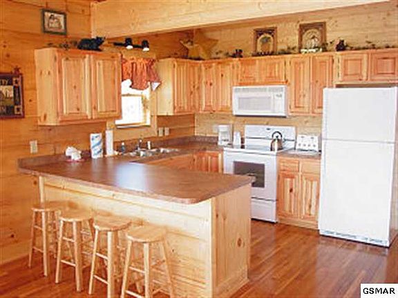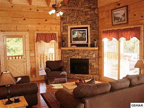 A spaciously designed three-level log cabin with four bedrooms, three and one-half bathrooms, and a separate lofted game room with a pool table nestled in a log cabin community with a natural mountain setting offering wooded mountain views of the Smokies. This elegantly decorated log cabin is situated with convenience to the Pigeon Forge attractions, shopping outlet malls, and the Great Smoky Mountains National Park. For those looking for relaxation to enjoy the beautiful, natural scenery, this upscale cabin offers: a covered wraparound main level deck with two wooden rockers and a gas grill; a covered lower level deck with a wooden swing and hot tub. With a stone gas fireplace, fully furnished kitchen, separate sitting room/den area, pool table, Jacuzzi, and all the luxuries for your home away from home, Sweet Escape is perfect for families, reunions, or group retreats in the Smokies. Be sure to bring along your lap-top. This vacation get-a-way provides WIRED and WIRELESS INTERNET ACCESS!