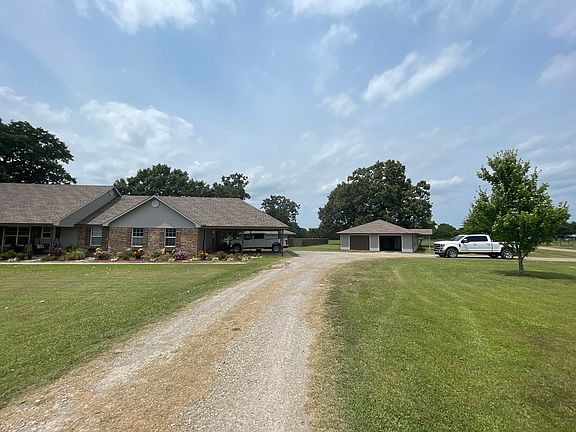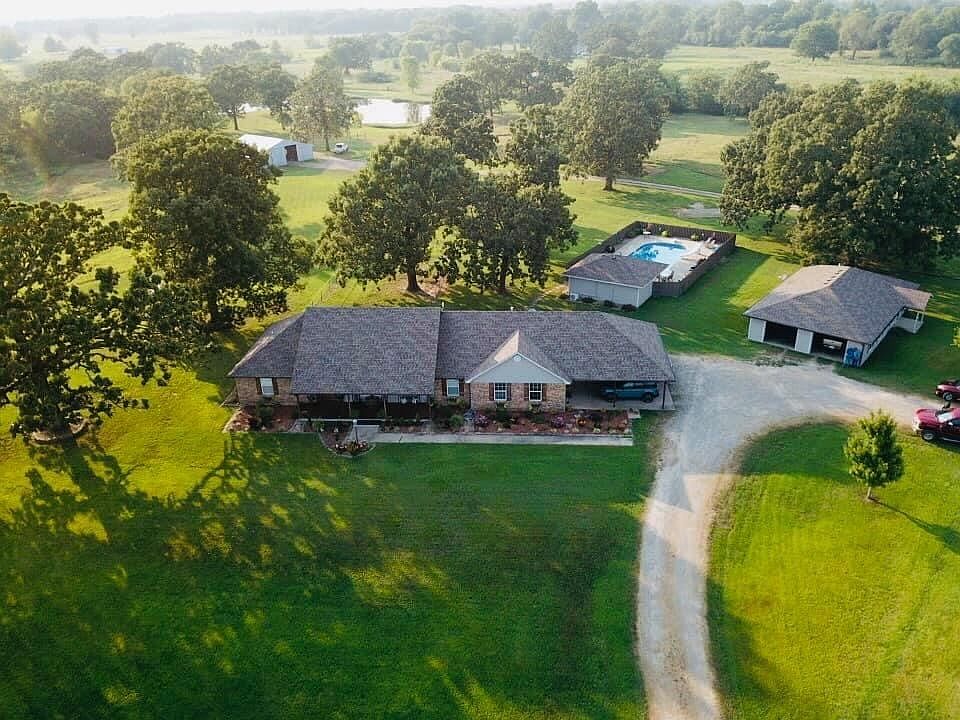 SOUTHEAST OKLAHOMA COUNTRY HOME WITH ACREAGE FOR SALE LOCATION: 32113 160TH Ave, Poteau, Oklahoma is located just minutes outside of the city of Poteau, Oklahoma. It is handy to all of the amenities of the city including schools, grocery stores, churches and medical facilities. The larger city of Ft. Smith, Arkansas, population about 80,000, is roughly a 25-minute drive. There is excellent hunting, fishing, camping, hiking as well as a variety of outdoor activities surrounding the many local lakes, rivers and streams. LAND: This beautiful 17-acre m/l has many bells and whistles. Enjoy sitting on the covered front porch with a scenic view of Sugarloaf Mountain. Just outside the back door is a 1,500 S.F. mother-in-law/guest suite with a garage. Entertain your guest with an inground saltwater pool with pool house, cabin on the pond, or generously stocked fishing pond. The property is fenced with a few paddocks for horses or cattle, loafing shed and a pole barn. SERVICES: Arkansas Valley Electric, RWD, AOG, phone, internet, mail delivery and school bus. HOME: This farmhouse designed and decorated brick home has a shingle roof on a concrete foundation with 2,444 S.F. of heated and cooled living area. The covered front porch has a beautiful, treated wood decking surrounded by maintained landscaping, inlcuding boxwoods, miniature crepe myrtle, ornimaental grasses, and ivey to give it the country charm and feel. The home has been updated with mostly barnwood floating vinyl flooring throughout the house. Backyard has an open wood deck with fenced in yard and small gravel run that is an ideal area for lettting your dogs outside when it is wet in the fall and spring and they can still remain clean. This home has two hot water heaters , one services the east and the other the west end of the home. Other features of the home include: ENTRY: Blue textured walls, white trim, textured white ceiling, chandelier lighting and a coat closet. LIVING ROOM: Living area has a gas burning fireplace, with red barnwood blinds, textured gray walls, an exposed wood beam with stained tounge and groove ceiling, and a wrough iron chandelier light. KITCHEN/DINING ROOM: Kitchen and dining area have 9 foot ceilings with an open concept that has the charming farmhouse look. Kitchen has ample cabinet space with a rustic white cabinets with copper tile backsplash, 2 door refrigerator, dishwasher, double white basin sink, built-in microwave, and neutral color countertops. Separating the kitchen from the dining area is a country blue rustic island with a built-in oven with glass downdraft stove top with overhead island and a 2-chair breakfast bar top. Dining area has textured gray walls, white trim and white textured ceiling. DEN/OFFICE: Located just off the carport driveway is an entryway to a Den/Office with painted plywood, white ceiling with ceiling fan with light fixture. MULTI-PURPOSE ROOM: Cooled and heated L-shaped room with door access to backyard. This room has many options, craft room, workshop, dog room, the options are unlimited. LAUNDRY/ UTILITY: Tile flooring, textured taupe walls, textured white ceiling, electric washer and dryer hookup with overhead cabinets, deep wash sink and on opposite wall is metal hanging rack and shelves. MASTER BEDROOM: This room has textured gray walls, with white trim, tray ceiling with ceiling fan with light fixture and large walk-in closet. There is an entryway to the master bedroom with a rustic vanity and mirror with a raised copper sink and waterfall faucet. MASTER BATHROOM: This room has a tiled walk-in shower with glass door, rustic single vanity with cabinet, mirror, and linen cabinet. HALL BATHROOM: Pedestal sink, mirror and toilet. BEDROOM #2: Textured gray ceiling, white trim, textured white ceiling, ceiling fan with light fixture and a small L-shaped walk-in closet. BATHROOM: This room is jack-n-jill style bathroom with a single vanity with tile backsplash, mirror, toilet, and a tub/shower combo. BEDROOM #3: Textured gray ceiling, white trim, textured white ceiling, chandelier light fixture and a small walk-in closet. BARN: 44'x40 Metal Pole Barn with concrete floor, approximately 5 stalls, electricity and lean to area with gravel floor. LOAFING SHED: This area has a fenced area with Loafing shed to hold your smaller animals. GUEST SUITE: The guest suite is approximately 1500 S.F. with attached 2-car garage. The suite is a 2-bedroom, 1 bath, heated and cooled area. The bathroom has a vanity, toilet, shower/tub combo (handicap accessible) with a washer/dryer hookup and overhead cabinets. Suite has an open concept full kitchen and living room area. Vinyl flooring throughout. POOL/POOLHOUSE: This area will be one of your go to hang out spots. The inground saltwater pool has a diving board, slide and basketball goal on a concrete pad with a gravel landscaped border and privacy fencing. To sweeten this spot is an air-conditioned pool house with stained tounge and groove ceiling and walls, a covered front porch with two ceiling fans which make a perfect spot to sit and watch the kids swim and play or a place to cookout in the shade , inside seating area, full kitchen, full bathroom with linen cabinet, vanity, toilet and shower/tub combo. CABIN: This rustic cabin is in a serene private part of the property with a pond view off the front deck of the cabin. Enjoy a tranquil getaway on this pristine pond whether it's your family getaway, fishing, wedding spot, or AIRBNB opportunity, this open concept 1-bedroom, 1-bathroom, full kitchen cabin affords any and all of these options for the new owners. The cabin is cooled and heated by window unit. POND: This very large pond that is located right in front of the cabin, close enough to fish off of the front porch. The water is approximatley 16ft deep on the south end. It is stocked with Largemouth Bass, catfish, perch, and crappie for a great fishing experience. One thing that sets this pond apart from most is it was constructed they slo