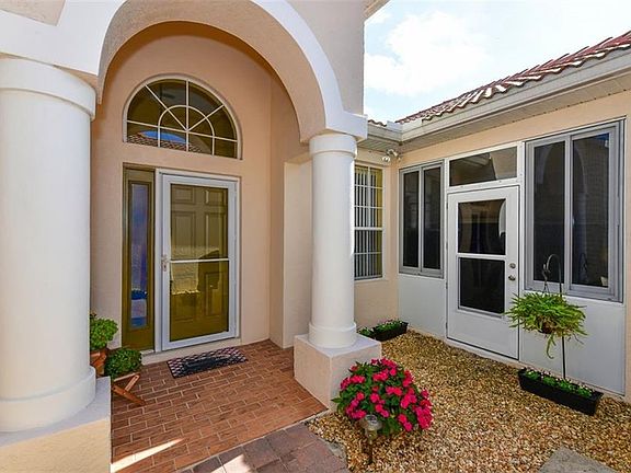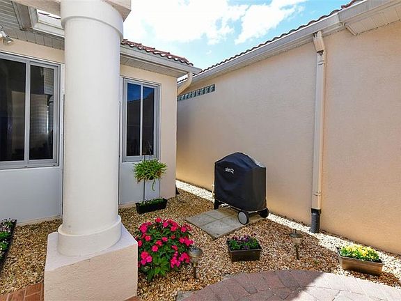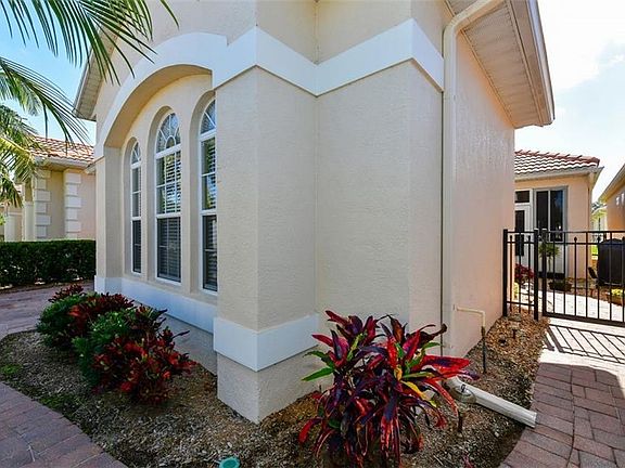 Exceptionally well maintained freestanding home that is run like a condo featuring 2 bedrooms and a large living area! Imagine the ease of ownership in a condo style community with low fees and a small outdoor courtyard included! From the welcoming entry through the fenced courtyard to the easy care tile and laminate flooring throughout, this home offers the perfect opportunity to live the Florida lifestyle in a patio home with all of the exterior maintained by the association. The kitchen features ample cabinets and granite counters that overlook the dining area. The main living area is located at one end of the home while the two bedrooms sit at the rear providing peace and privacy. The master offers an additional sitting area that can be used for an office or exercise room. The lanai area has been enclosed and conditioned for year round enjoyment. The HVAC system was replaced in 2017 with a high efficiency Trane system and upsized to accommodate enclosing the lanai. Additional storage space was added above the closet areas and enclosed with custom doors. This pet friendly community offers a community pool, clubhouse and playground while the gated neighborhood allows security for owners. The association fee includes the escrow reserves, exterior maintenance (including roof), landscape maintenance, clubhouse, community pool and playground. Palm Lakes is conveniently located near shopping, dining and area parks as well as being only a short drive to downtown Sarasota. Come take a look toda
