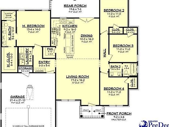- Ceiling Fan(s), Shower, Attic, Walk-In Closet(s), High Ceilings, Solid Surface Countertops, Kitchen Island