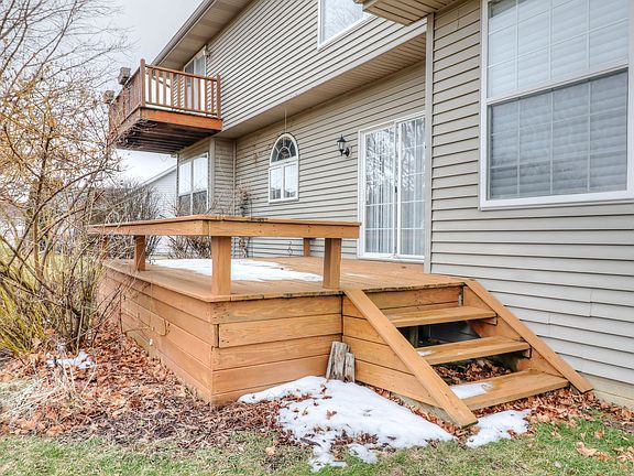 Beautiful hardwood floors greet you at the front door and flow gracefully throughout the first floor. Oversized tile floors in the kitchen accompanies beautiful medium dark stained cabinets with black speckled granite and opens up to the grand vaulted ceiling great room with fireplace. Sliding glass doors open to the inviting back deck and overlooks the very tastefully landscaped extra large and open space back yard. Oversized Laundry/mud room off the garage and very large oversize windows complete this main level with plenty of daylight. Extra wide staircase leads to four bedrooms upstairs including a large bonus room/5th bedroom. The large master bedroom includes a spa like bathroom with a large whirlpool bath (75 gallon hot water heater to fill it up). Separate walk in shower, Sky lite and dual sinks. Impressive walk in closet and a balcony finish out this grand master bedroom. All other bedrooms are spacious with lovely vaulted ceilings and more oversized windows. 5th bedroom or bonus room includes vaulted ceiling, skylights and a view over the grand vaulted ceiling great room. Extra wide stairs lead to the finished basement which is a large space for family activities or game room. A great place for friends and family members to exercise during the indoor hours. Lovely front porch for sitting or just decorating and nice sized back deck for bbq and entertaining. This house sits in the best of both worlds... close to everything but not too close with plenty of space in and around the house. A Ron Carter Home.