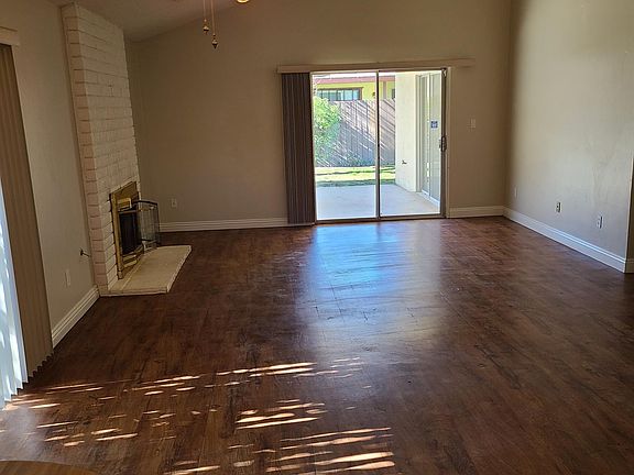 Beautiful patio home for rent!! 1275 square ft., 2 bedroom, 1.75 bath in a desirable family neighborhood. Wonderful home has vinyl flooring in main areas and new carpet in bedrooms. Light and bright paint color throughout. Kitchen comes with refrigerator and breakfast bar for additional seating. Living room has lots of light and fireplace for chilly winter nights. Separate dining area has wet bar and private atrium area for entertaining. Master suite has large dressing area and plenty of storage. Private yard and covered patio. Attached 2 car garage with w/d hookups. 1 year lease required. No pets, no evictions accepted. Tenant responsible for utilities, water. Landlord responsible for HOA fees, trash and gardener.