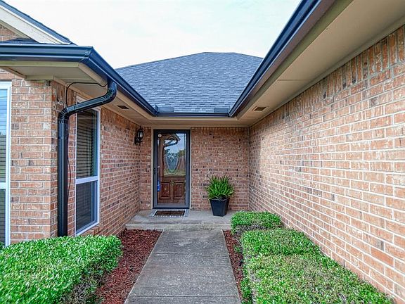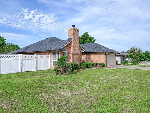 Additional features include plenty of storage throughout the home and an above-ground storm shelter in the garage, ensuring peace of mind during Oklahoma's storm season. The large backyard is enclosed with a white vinyl privacy fence and includes a storage shed. This outdoor space is perfect for gatherings and is ready to be transformed into your own backyard oasis.