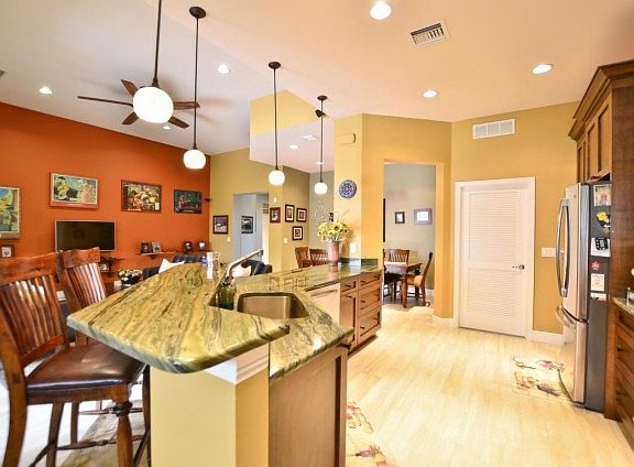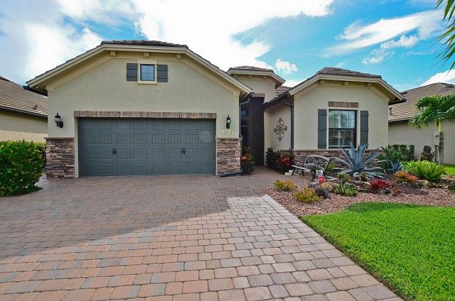 Must see to appreciate this totally remodelled Portsmouth model in Castellina. Starting with the new custom kitchen, featuring shaker style Maple Cabinets, upgraded 3cm granite countertops, glass tile backsplash, upgraded stainless appliances, built-in wine refrigerator, undermount lighting in the cabinets and lots of built-ins with additional storage! Even the washer and dryer are high efficiency! The flooring is the new wood-look porcelain tile throughout with 6'' baseboards. Upgraded bathrooms. High hats throughout and additional electrical outlets; prewired for surround sound. Hurricane impact glass throughout. Extended paver driveway with paver walkway. Huge screened-in patio plus the backyard is fully fenced! Upgraded lush landscape. Alarm, tankless gas water heater, water softener.
